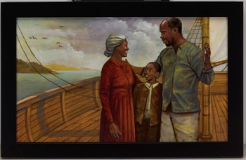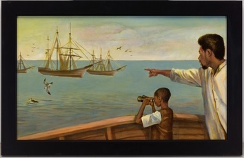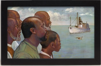 EAST GREENSBORO, N.C. (March 19, 2021) – The University Galleries at North Carolina Agricultural and Technical State University will open its in-person exhibition, “Freedom Ship: The Works of Curtis James” on April 1, 2021 to run until June 30, 2021. The exhibition features 18 works by James that illustrate the 2006 children’s book, “Freedom Ship” by Doreen Rappaport. The story is based on the life of Robert Smalls, an escaped slave who piloted the slave ship, Planter, carrying other escaped slaves to freedom past the confederate battleships in Charleston, South Carolina. The exhibition was made possible through the generous art donation by Texas businessman Arthur Primas, who donated 35 works of art, including works by James and Bryan Collier.