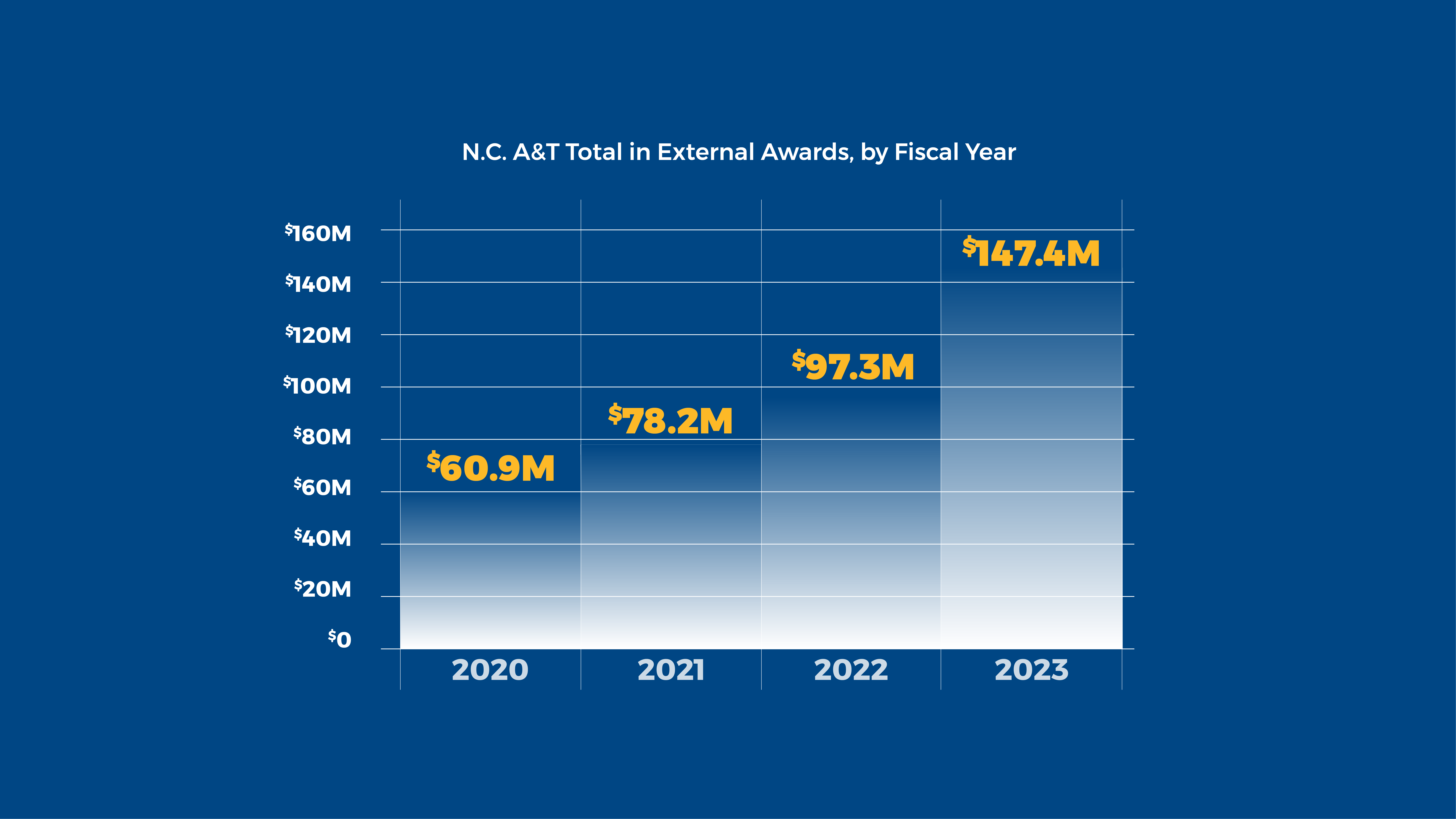 External contracts and grants have increased by more than $85 million since FY2020 at North Carolina A&T, which is one of the University of North Carolina System’s top three most productive research universities.
