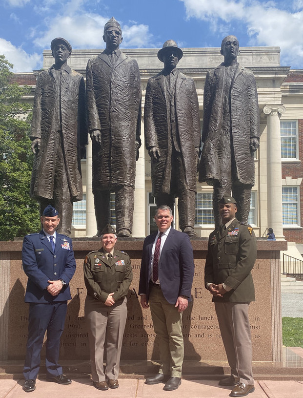 The group learned about additional military and civically-engaged connections to the university, including the A&T Four’s nonviolent demonstration, which sparked the sit-in movement during the civil right movement.